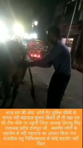 कासगंज घायल नंदी का उपचार करते हुए सर्व मानव गौ सेवा संस्थान जिला अध्यक्ष हिमांशु सिंह
