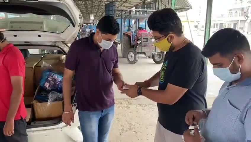 गदरपुर व्यापार मंडल के पदाधिकारियों ने अनाज मंडी गदरपुर में बांटे ऑक्सीमीटर, वेपरायज़र, सेनिटेजेर व मास्क।