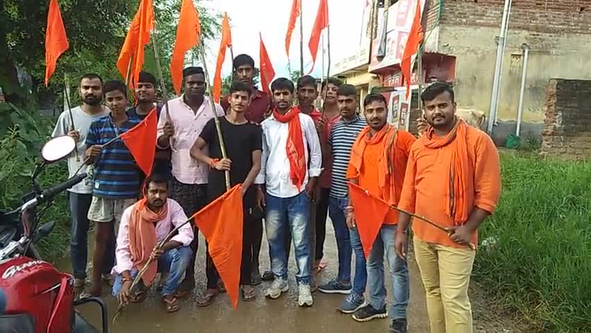 अयोध्या में श्री राम मंदिर के शिलान्यास के मौके पर मयूरहंड ग्राम के नवयुवकों ने गांव को किया भगवा मय