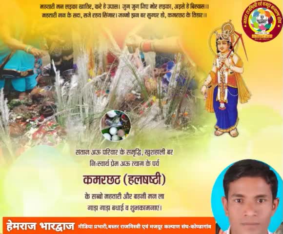 छत्तीसगढ की संस्कृति एवं लोकपरंपरा के पर्व कमरछठ की हार्दिक हार्दिक शुभकामनाएं... #कमरछठ,हलषष्ठीपर्व