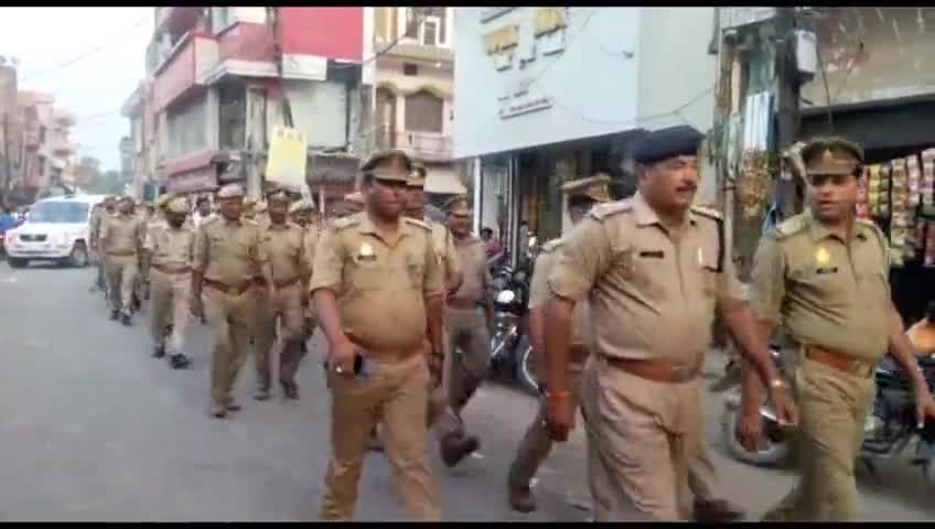 अमेठी: सीओ अमेठी लल्लन सिंह द्वारा कस्बे में पुलिस बल के साथ बाज़ार एवं भीड़भाड़ वाले स्थानों पर किया गया पैदल मार्च
