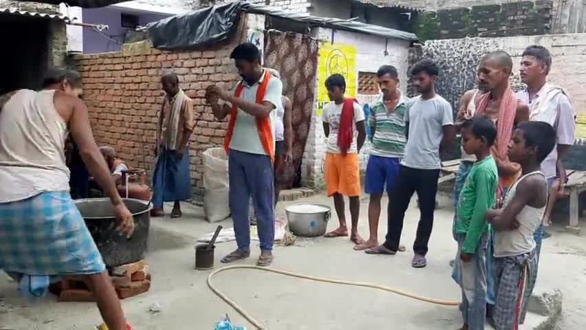 आज से अपने निजी व्यवस्था से बाढ़ पीड़ितों के भोजन की सुरूवात करते क्षेत्रीय प्रभारी व पार्षद पति विकाश शर्मा।
