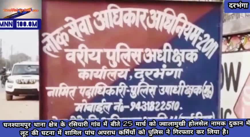 दरभंगा: #घनश्यामपुर में हुए लूट की घटना में शामिल पांच अपराध कर्मियों को पुलिस ने किया गिरफ्तार,