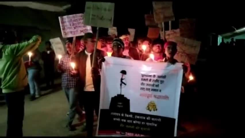 पुलवामा हमले में शहीद जवानों के याद में कुरमन गांव के सभी युवाओं ने कैंडल मार्च निकालकर दिया भावभीनी श्रद्धांजलि।