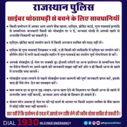 जरूरी सुरक्षा उपाय अपनाए, अपने आप को साइबर धोखाधड़ी से बचाए, निम्न आसान टिप्स से खुद को सुरक्षित रखे।