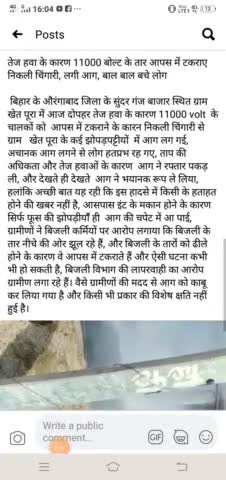 तेज हवाओं के कारण तारों को टकराने से निकली चिंगारी, लगी आग ,बाल-बाल बचे लोग