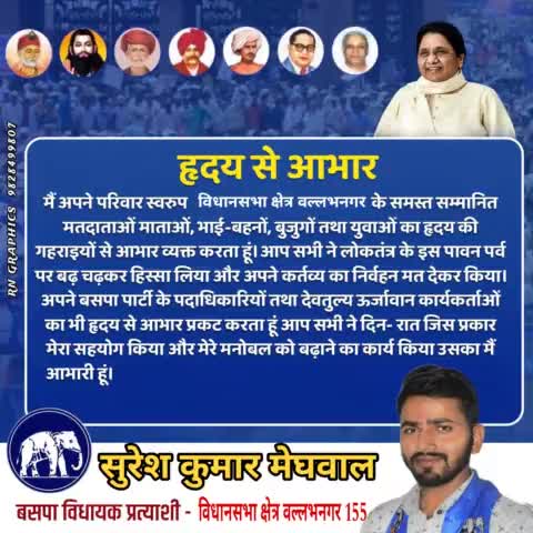आभार ओर धन्यवाद वल्लभनगर विधानसभा वासियो को।।