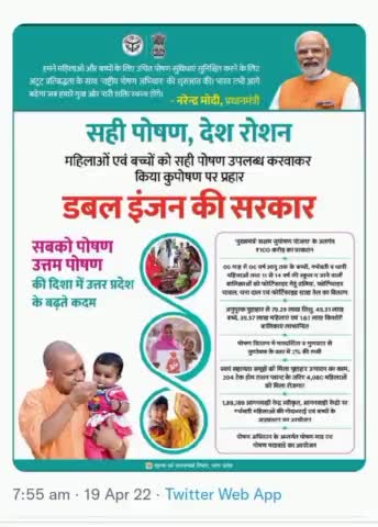 उत्तर प्रदेश : #CMयोगी ने ट्वीट कर के कहा डबल इंजन सरकार सही पोषण, देश रोशन। मिस्टर लाल बाबू दास
