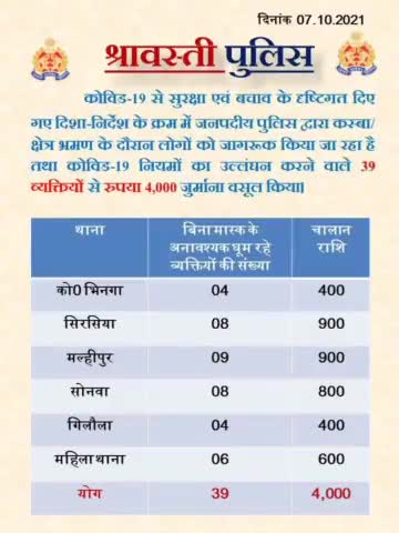 भिनगा: भिनगा पुलिस ने कोविड नियमों का उल्लंघन करने वाले चार लोगों पर की कार्रवाई