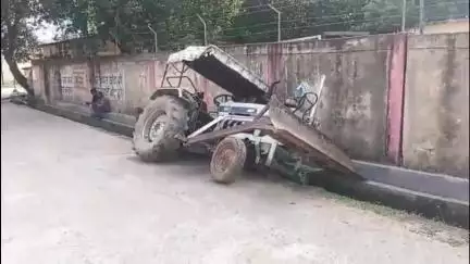 भांडेर थाना क्षेत्र के सामुदायिक स्वास्थ्य केंद्र के पास शनिवार दोपहर 03 बजे के आसपास एक तेज रफ्तार ट्रैक्टर अनियंत्रित होकर नाले में पलट गया। इस हादसे में ट्रैक्टर चालक बाल-बाल बच गया। जिसे एक बड़ा हादसा टल गया। स्थानीय लोगों ने जानकारी देते हुए बताया कि एक ट्रैक्टर जोकि दतिया रोड की तरफ से थाने की ओर जा रहा था तभी अनियंत्रित होकर पलट गया