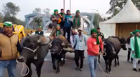 कृषि बिल व पैट्रोल डीजल व गैस की बढती कीमतो के विरोध में प्रदेश महामंत्री चौधरी बीसी प्रधान के नेत्रत्व मे भारतीय किसान यूनियन भानु के सिपाही भैसा बुग्गी की सवारी करते हुये ।
