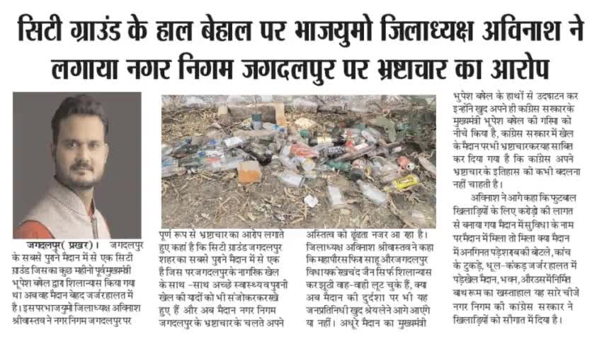 जगदलपुर शहर के सबसे पुराने खेल मैदान सिटी ग्राउंड पर नगर निगम जगदलपुर की कांग्रेस सरकार के द्वारा भ्रष्टाचार किए जाने के खिलाफ पोल खोल अभियान।