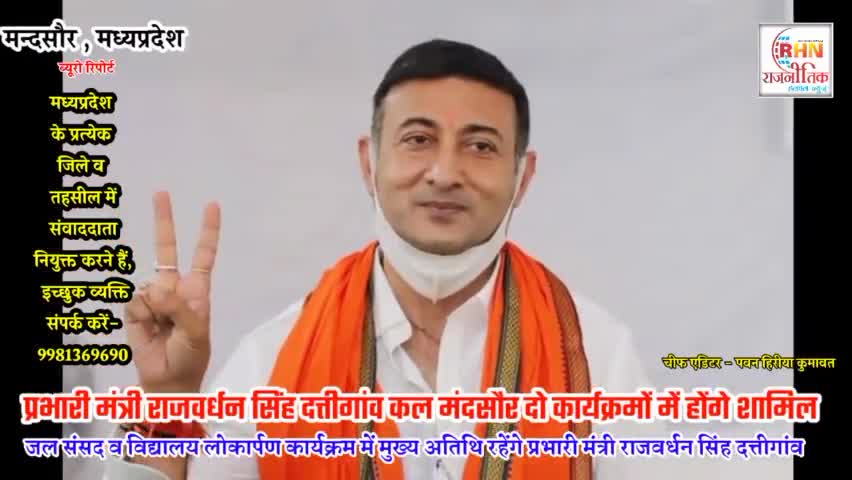 प्रभारी मंत्री राजवर्धन सिंह दत्तीगांव कल मंदसौर दो कार्यक्रमों में होंगे शामिल