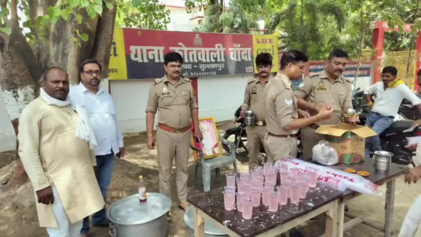 चाँदा कोतवाली के परिसर में हाइवे के किनारे पुलिसकर्मियो ने ज्येष्ठ माह के चतुर्थ मंगलवार को राहगीरों और आम लोगों में शरबत बूंदी का वितरण किया।ताकि लोगों को भीषण गर्मीं में थोड़ी राहत मिल सके।इस मौके पर थानध्यक्ष रविन्द्र कुमार सिंह, यस आई तीर्थराज सिंह चुन्नुलाल अश्वनी वर्मा पंकज सिंह आदि लोग मौजूद रहे ।