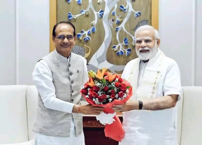 राष्ट्र नायक प्रधानमंत्री श्री नरेन्द्र मोदी जी से जननायक मुख्यमंत्री श्री शिवराज सिंह चौहान जी की सप्रेम भेंट विकास को लेकर हुई चर्चा
