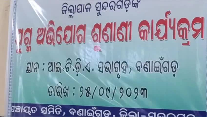 ସୁନ୍ଦରଗଡ ସହର: ବଣାଇଁଗଡରେ ଜିଲ୍ଲା ପ୍ରଶାସନ ପକ୍ଷରୁ ଯୁଗ୍ମ ଅଭିଯୋଗ ଶୁଣାଣି କାର୍ଯ୍ୟକ୍ରମ ଅନୁଷ୍ଠିତ