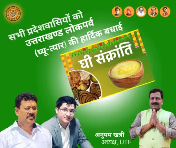 उत्तराखंड टाइगर फोर्स की तरफ से आप सभी को उत्तराखंडी लोक पर्व घी संक्रांति की बहुत-बहुत बधाई 💐💐