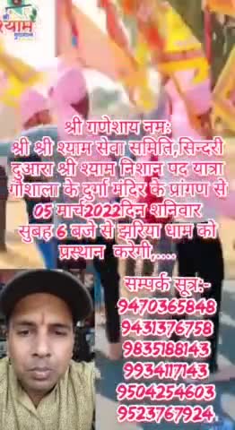 कलियासोल: सिन्दरी के गौशाला के दुर्गा मंदिर के प्रांगण से 5 मार्च सुबह 6 बजे श्री श्याम निशान पद यात्रा झरिया श्यामधाम को निकलेगी.
