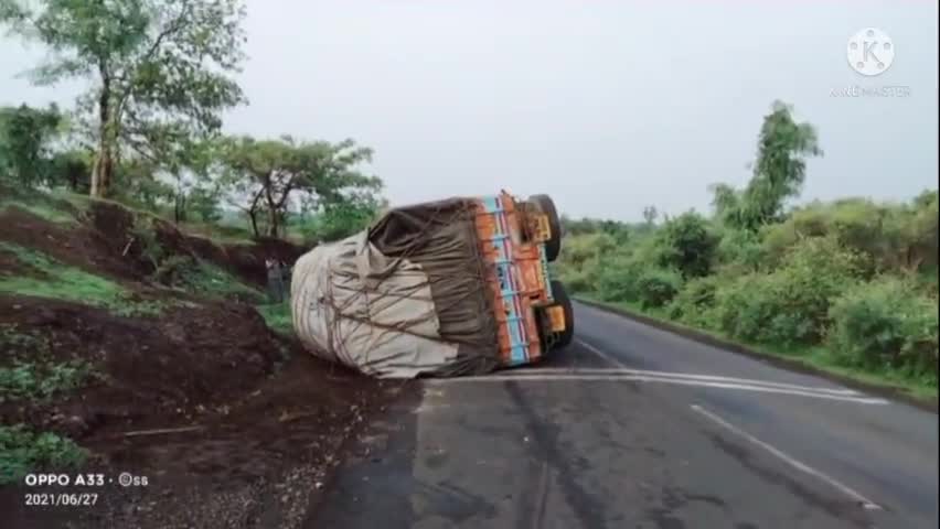 बुरहानपुर नगर: इंदौर इच्छापुर हाईवे पर लहसुन से भरा हुआ ट्रक रात 12:00 बजे संतुलन बिगड़ने से पलटा #शरीफ उद्दीन@