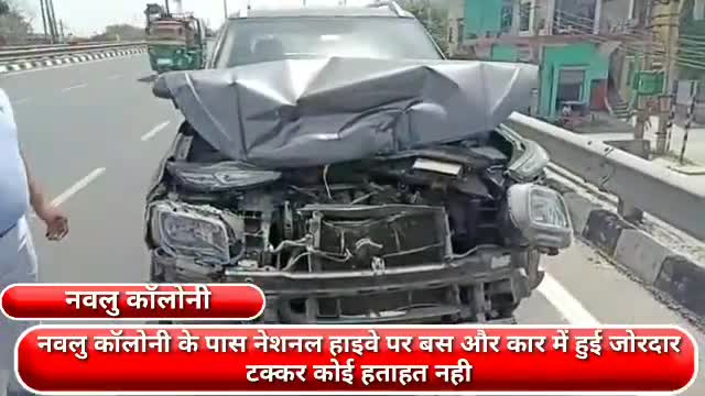 फरीदाबाद: नवलु कॉलोनी के पास नेशनल हाइवे पर बस और कार में हुई जोरदार टक्कर, कोई हताहत नहीं
