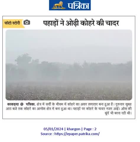 महेश्वर/काकड़दा अंचल के पहाड़ों ने ओडी कोहरे की चादर