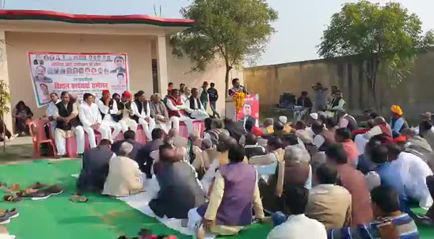 समाजवादी पार्टी कार्यकर्ता सम्मेलन जिला मुख्यालय औरैया में सम्बोधित करते पूर्व मंत्री विधायक विनोद यादव कक्का