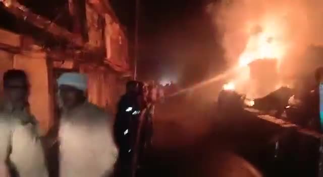बुलन्दशहर - तेज रफ्तार ट्रक पलटने से बाजार में लगी भीषण आग, लाखो रुपये की सम्पत्ति जलकर हुई राख। आग की जद में आयी मार्