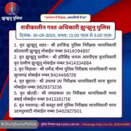 रात्रीकालीन गश्त अधिकारी झुन्झुनू पुलिस #JhunjhunuPolice