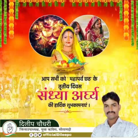 सूर्योपासना, सदाचार, प्रेम, श्रद्धा, भक्ति और लोक आस्था के महापर्व छठ पूजा के तृतीय अनुष्ठान #संध्या_अर्घ्य की आप सभी को बहुत-बहुत बधाई एवं हार्दिक शुभकामनाएं। छठव्रती मेरी माताओं-बहनों और उनके परिवारजनों का यह कठिन तप सफल हो,