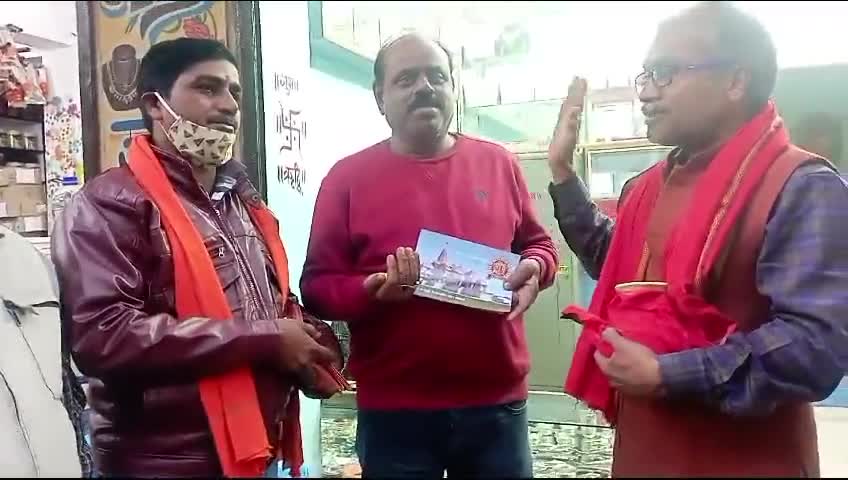 बौंसी:- राम भक्तों को अयोध्या श्री राम मंदिर से आई पूजित अक्षत और आमंत्रण पत्रक समर्पित कर आमंत्रित करते हुए जय श्री राम