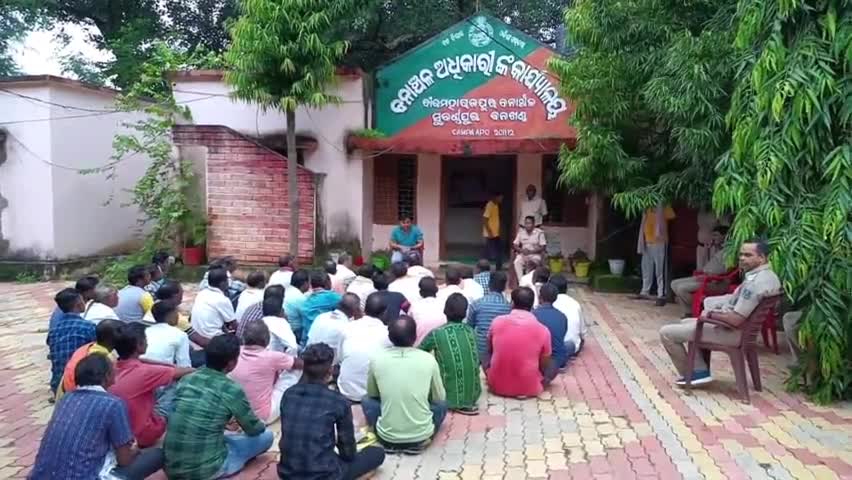 ସୁବଳୟା: ଗ୍ରାମ୍ୟ ଜଙ୍ଗଲ କାଟି ଚାଷ ଜମି କରିବାକୁ ନେଇ ,ବୀରମହାରାଜପୁର ବନାଞ୍ଚଳ କାର୍ଯ୍ୟାଳୟ ସମ୍ମୁଖରେ ଧାରଣାରେ ବସିଲେ ଘିଚାପାଲି ଗ୍ରାମବାସୀ
