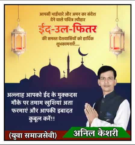 भावी चेयरमैन प्रत्याशी अनिल केसरी की तरफ से समस्त देशवासियों को व नगर पंचायत हाटा वासियों को ईद की ढेर सारी शुभकामनाएं।