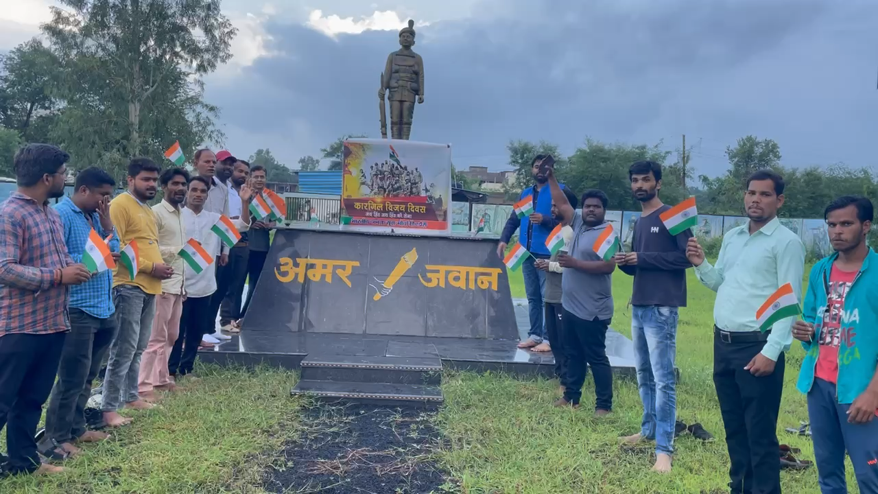 कारगिल विजय दिवस पर भारतीय जनता युवा मोर्चा द्वारा हाथ में तिरंगा लेकर शाहिद स्मारक पर भारत के वीर जवानों को श्रद्धांजली अर्पित की