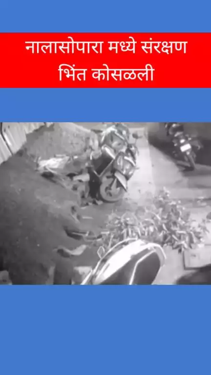 नालासोपारा मध्ये चक्रधर नगर मध्ये आज शुक्रवार दिनांक १९ सप्टेंबर रोजी पहाटे पाच च्या सुमारास संरक्षण भिंत कोसळली असून यात कुठलीही जीवितहानी नसून मात्र मोटरसायकलचे मोठ्या प्रमाणात नुकसान झाले आहे ही सर्व घटना तिकडे असलेल्या सीसीटीव्ही कॅमेऱ्यात कैद झाली आहे