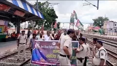 रेल रोको आंदोलन जन अधिकार पार्टी द्वारा