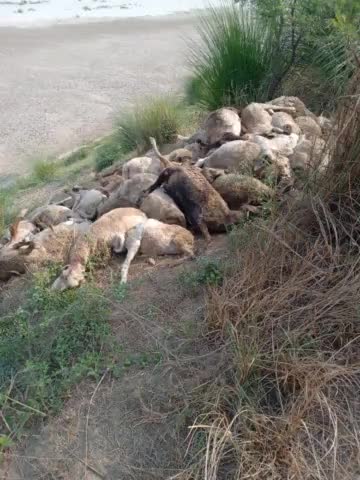 agyat karano se achanak 150 bhendo ki hui maut , sabhi ko ganga kinare feka gaya