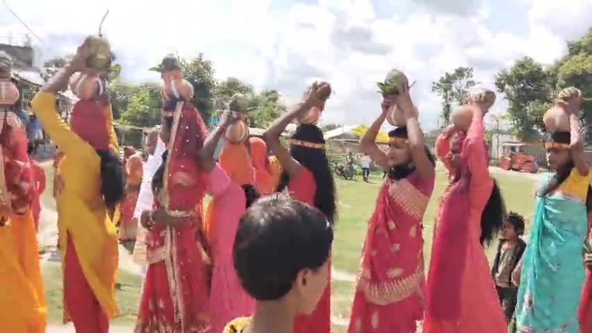 मधेपुरा: बुधमा रेलवे स्टेशन स्थित दुर्गा स्थान से निकाली गई भव्य कलश शोभायात्रा