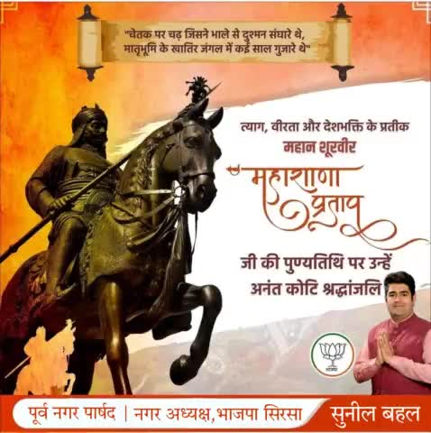 "चेतक पर चढ़ जिसने भाले से दुश्मन संघारे थे, मातृभूमि के खातिर जंगल में कई साल गुजारे थे" त्याग, वीरता और देशभक्ति के प्रतीक महान शूरवीर महाराणा प्रताप जी की पुण्यतिथि पर उन्हें अनंत कोटी श्रद्धांजलि 🙏