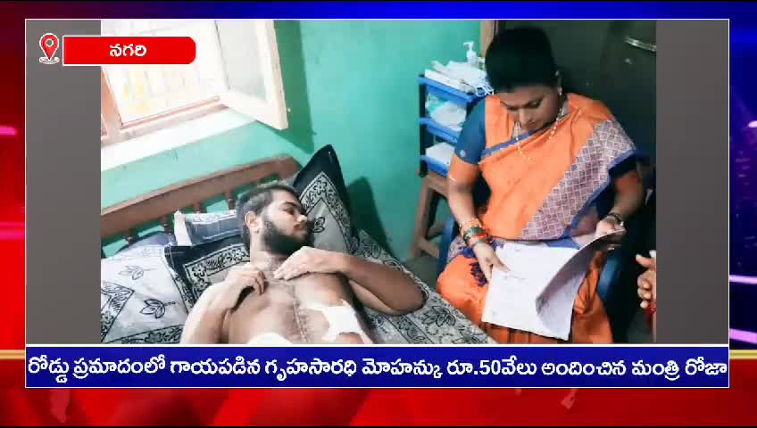 నగరి: రోడ్డు ప్రమాదంలో గాయపడిన గృహ సారథి మోహన్ను పరామర్శించి రూ.50వేలు ఆర్థిక సాయం అందించిన మంత్రి రోజా