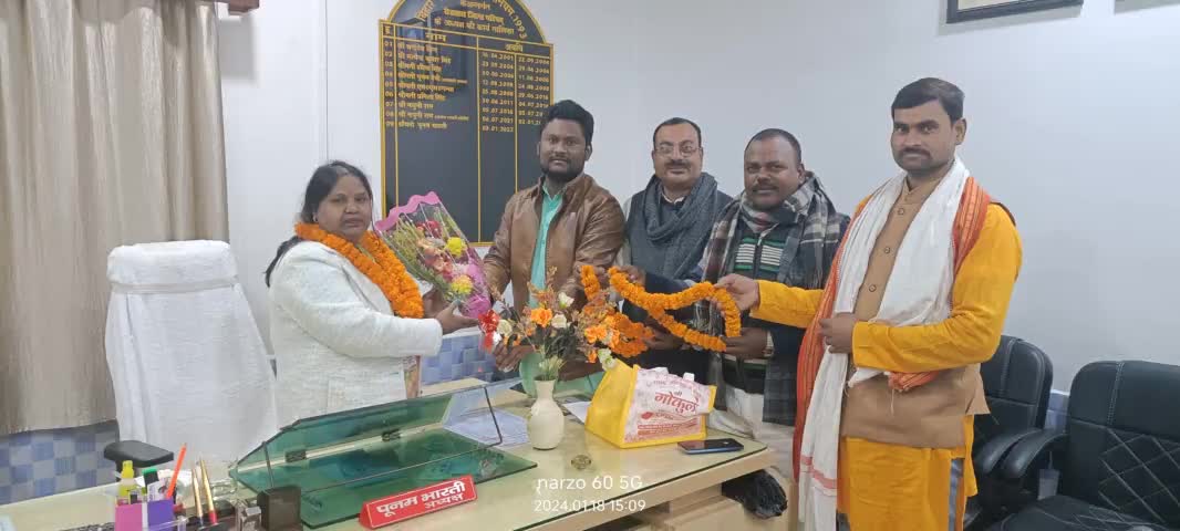 जिला पार्षद अध्यक्ष पूनम भारती जी जीत की बधाई देते हुए