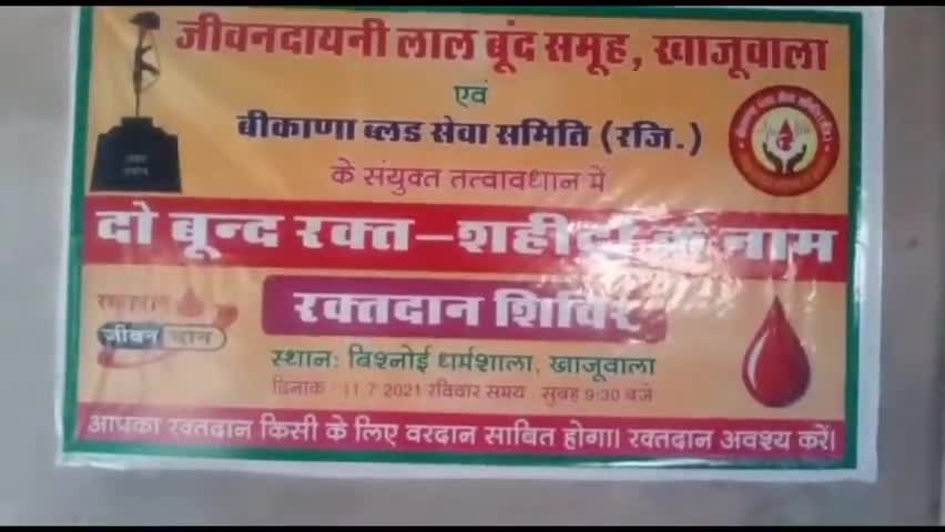 खाजूवाला बिश्नोई धर्मशाला में रक्तदान शिविर का हुआ आयोजन, युवाओं ने बढ़ चढ़कर लिया हिस्सा,आयोजनकर्ताओं ने जताया आभार