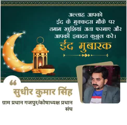 आप सभी देश वासियों को ईद की ढेर सारी शुभकामनाएं सुधीर कुमार सिंह प्रधान गजपुर / कोषाध्यक्ष प्रधान संघ