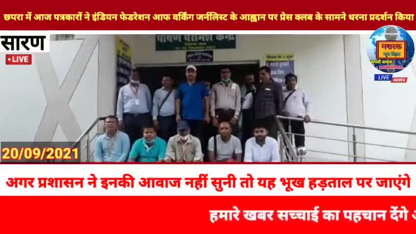 छपरा: छपरा : में आज पत्रकारों ने इंडियन फेडरेशन आफ वर्किंग जर्नलिस्ट के आह्वान पर प्रेस क्लब के सामने धरना प्रदर्शन किया