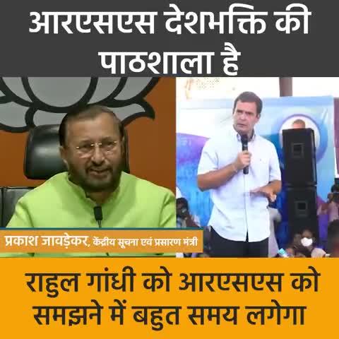“राष्ट्रीय स्वयंसेवक संघ, देशभक्ति की पाठशाला है राहुल गांधी को आरएसएस को समझने में बहुत समय लगेगा” -प्रकाश जावड़ेकर