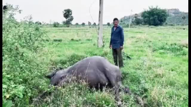 నల్గొండ జిల్లా, మర్రిగూడ మండల పరిధిలోని కుదాబక్షుపల్లిలో విద్యుత్ షాక్ తో గురువారం సాయంత్రం గేదె మృతి చెందింది. బాధిత రైతు దూసరి పండు తెలిపిన వివరాల ప్రకారం.. తన గేదెను రోజువారి మాదిరిగా మేత మేపేందుకు పొలం వద్దకు తీసుకెళ్లగా అక్కడ దిగిపడి ఉన్న విద్యుత్ తీగకు ప్రమాదవశాత్తు గేద తగిలి అక్కడికక్కడే మృతి చెందినట్లు తెలిపారు. విద్యుత్ అధికారుల నిర్లక్ష్యం వల్లనే గేదె మృతి చెందిందని బాధిత రైతు ఆరోపించారు. నష్టపోయిన గేద విలువ సుమారు రూ.80 వేలు ఉంటుందని, ఇతరులు ప్రభుత్వం ఆదుకోవాలని కోరాడు.