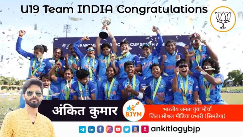 गर्व है हमें अपने देश की बेटियों पर जिन्होंने अंडर 19 T20 विश्व कप जीत कर भारत को गौरान्वित किया।