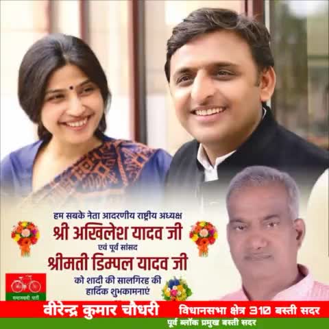 समाजवादी पार्टी के राष्ट्रीय अध्यक्ष आदरणीय श्री अखिलेश यादव जी एवं पूर्व सांसद मा० डिम्पल यादव जी के वैवाहिक सालगिरह पर