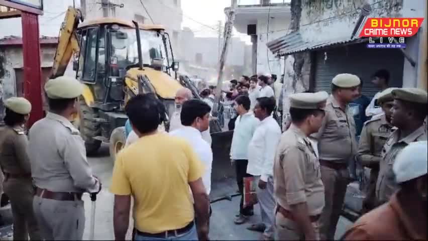 बिजनौर के शेरकोट मे मचा हड़कंप बुल्डोजर लेकर मैन मार्किट मे पहुंची पुलिस मची अफरा-तफरी