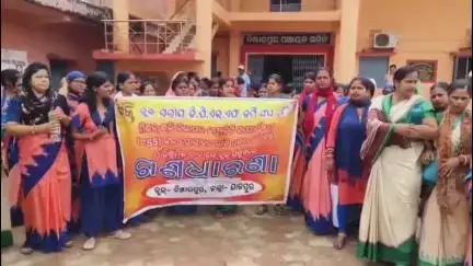 ବରୀ ରାମଚନ୍ଦ୍ରପୁର: ମିଶନଶକ୍ତି ବିଭାଗ କମ୍ୟୁନିଟି ସପୋର୍ଟ ଷ୍ଟାପଙ୍କ ସମସ୍ୟାର ସମାଧାନ ଦାବିରେ ବିଞ୍ଝାରପୁର ବ୍ଲକ ସମ୍ମୁଖରେ କର୍ମଚାରୀ ସଙ୍ଘର ଧାରଣା
