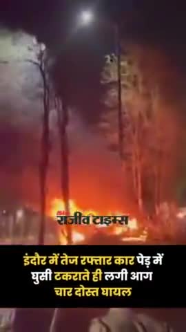 इंदौर में तेज रफ्तार कार अनियंत्रित होकर पेड़ में जा टकराई, हादसे से कार में लगी आग, 4 दोस्त जख्मी